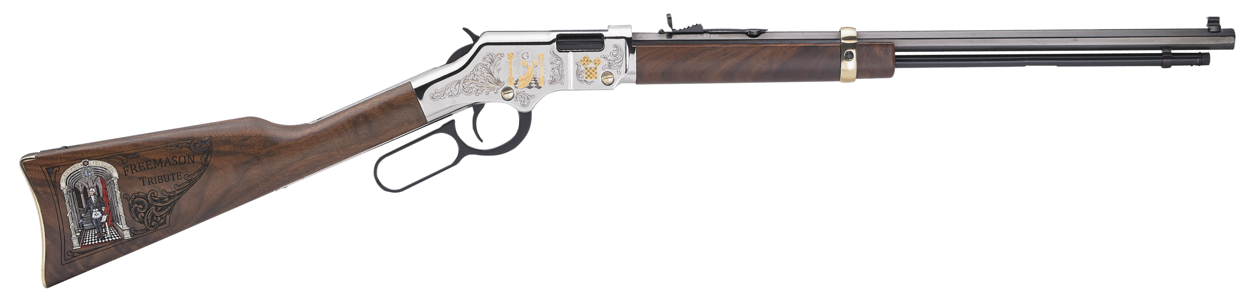 Henry H004MAS Golden Boy Freemasons Tribute Full Size 22 Short, 22 Long, 22 LR, 16 LR/21 Short, 20″ Blued Barrel, Nickel-Plated Metal Finish & American Walnut Stock Right Hand