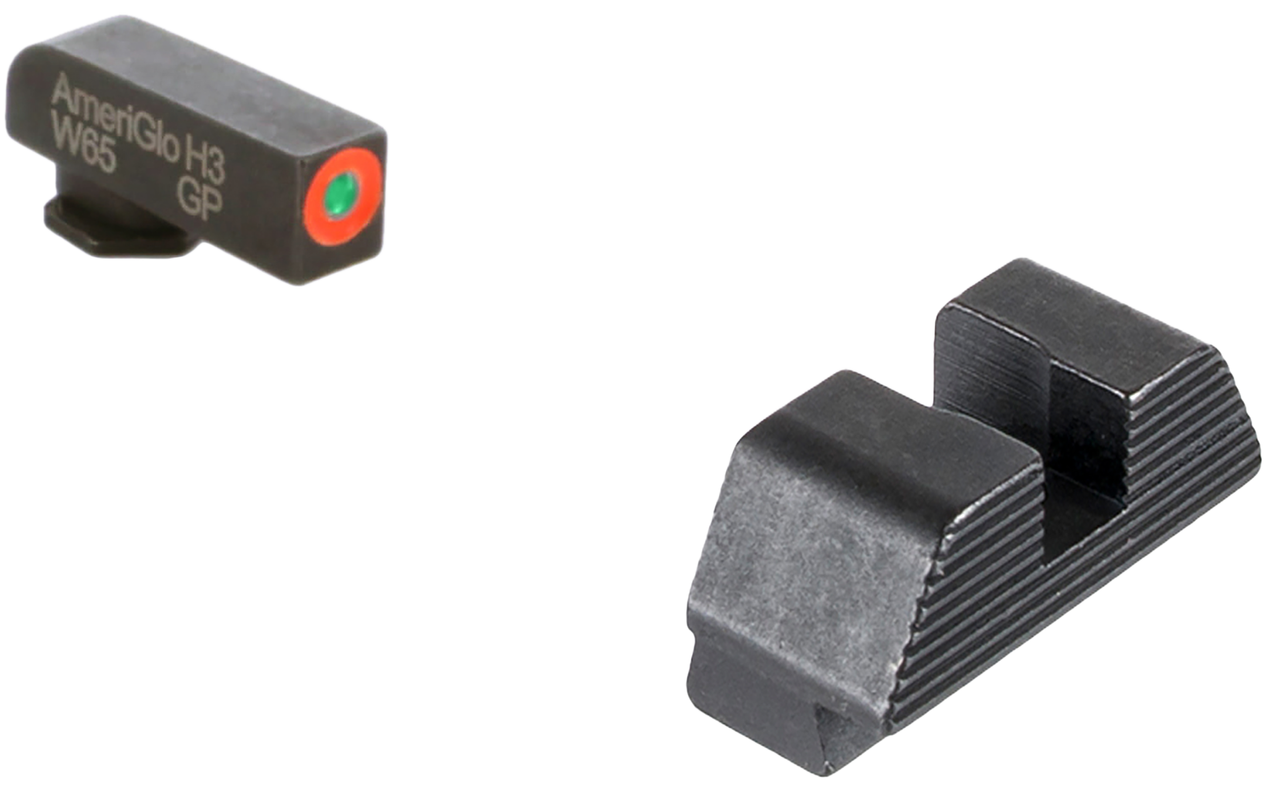 AmeriGlo GL433 Protector Sight Set for Glock Green Tritium Orange Outline Front Sight-Black Serrated Rear Sight