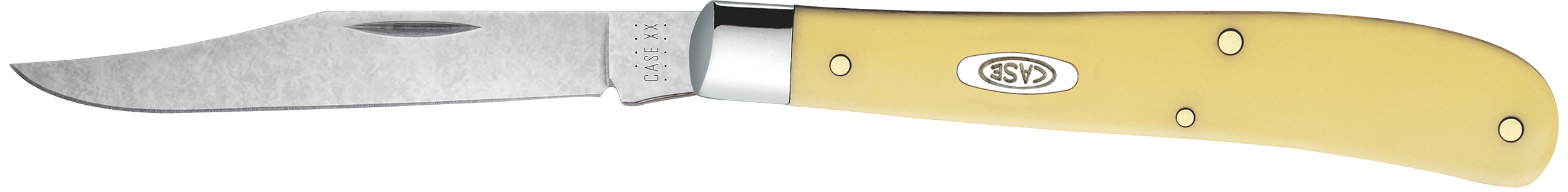 Case 031 S Trapper Slimline 3.25″ Folding Clip Point Plain Tumble Polish Chrome Vanadium Steel Blade Yellow Synthetic Handle
