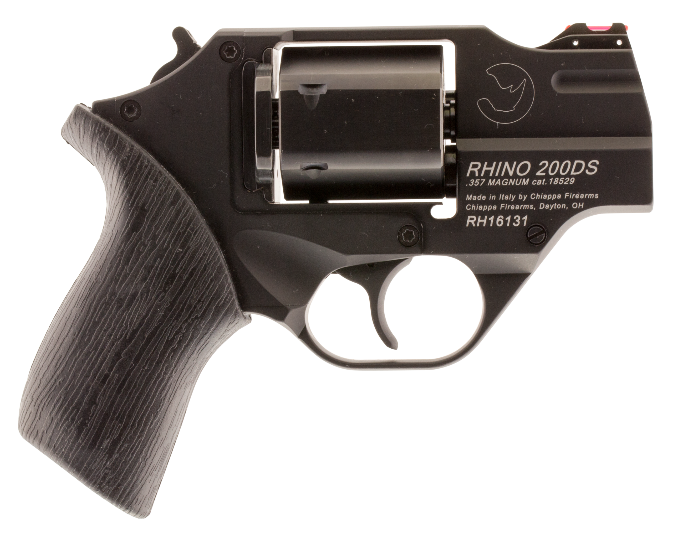 Chiappa Firearms CF340216 Rhino 200DS Small Frame 357 Mag 6 Shot, 2″ Black Anodized Steel Barrel, Blued Steel Cylinder, Black Anodized Aluminum Frame, Black Rubber Grip, Concealed Hammer