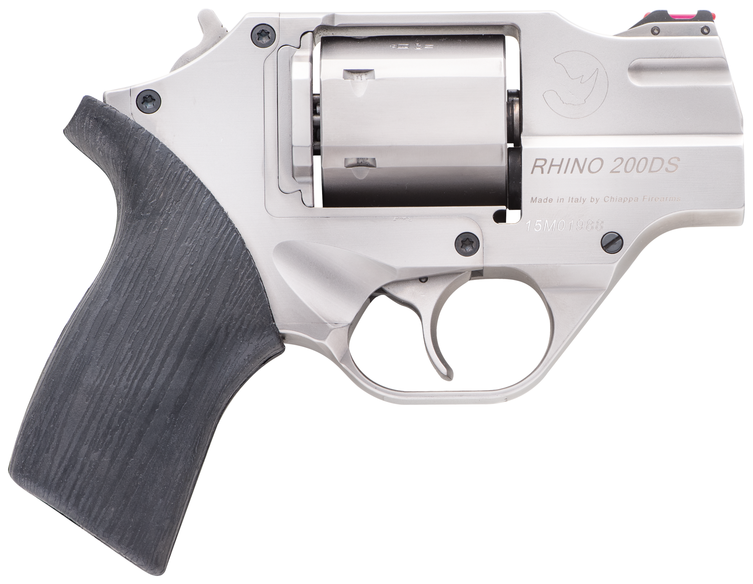 Chiappa Firearms CF340218 Rhino 200DS Small Frame 357 Mag 6 Shot 2″ Nickel-Plated Steel Barrel & Cylinder, Nickel-Plated Aluminum Frame, Black Rubber Grip, Concealed Hammer