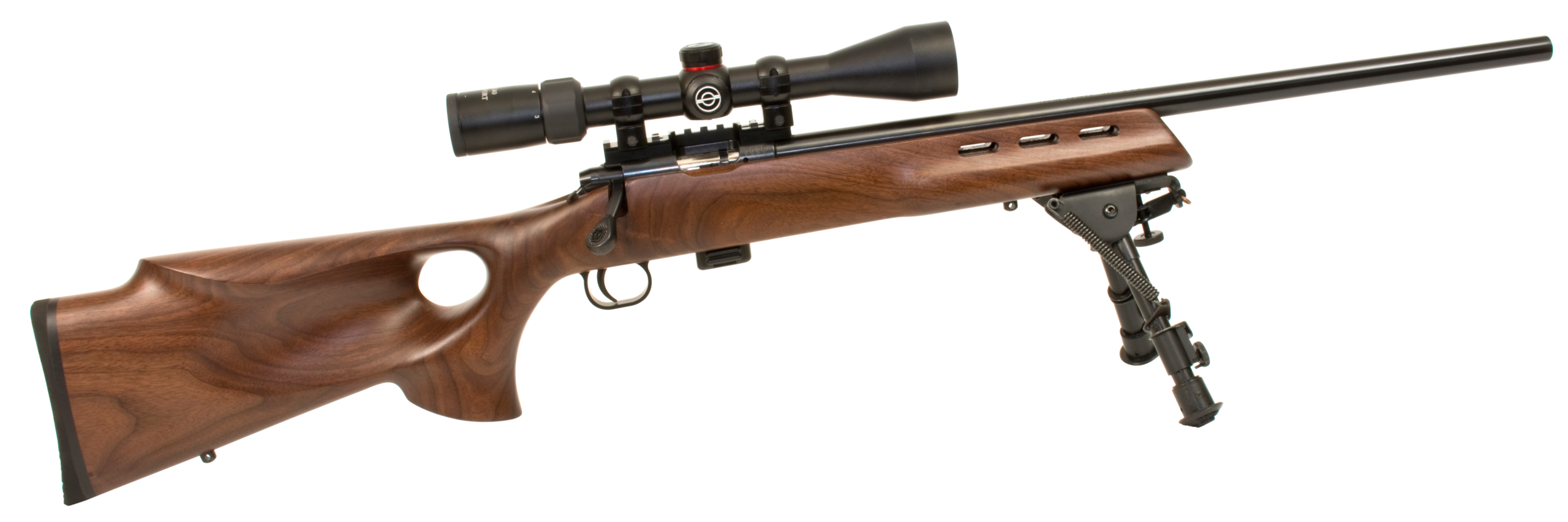 Crickett KSA20030 Model 722 Varmint Package Youth 22 LR 7+1 20″ Blued Bull Barrel, Blued Steel Receiver, Fixed Thumbhole Walnut Stock, Includes Simmons 3-9x40mm Scope, Bipod, Case & Scope Rings