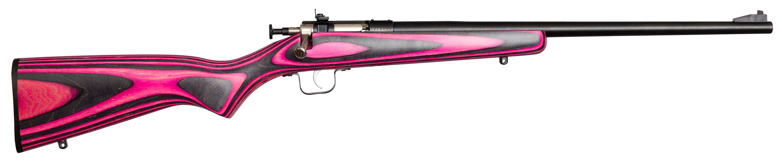 Crickett KSA2226 Youth 22 LR 1rd 16.12″ Stainless Steel Barrel, Fixed Front/Adjustable Rear Peep Sights, Pink/Black Laminate Stock w/11.5″ LOP, Rebounding Firing Pin Safety