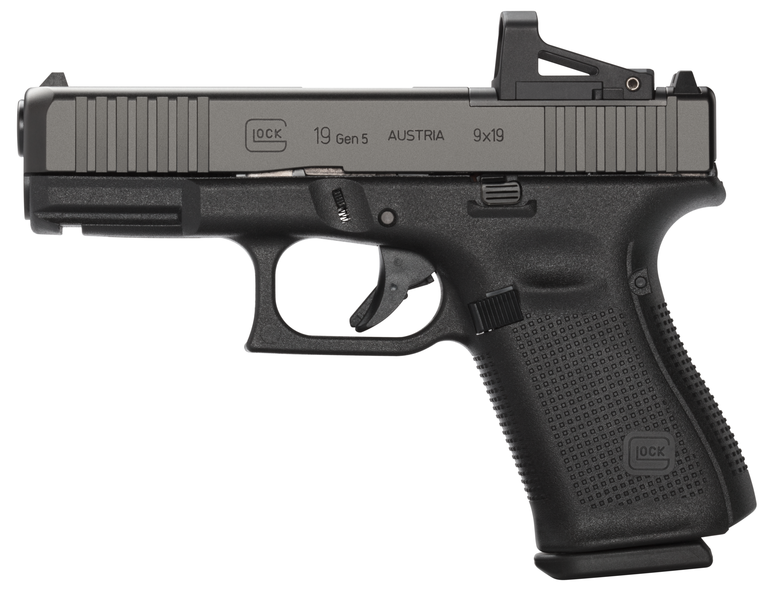 Glock PA195S201MOS G19 Gen5 Compact MOS 9mm Luger 4.02″ 10+1 Overall Black Finish with nDLC Steel with Front Serrations & MOS Cuts Slide, Rough Texture Interchangeable Backstraps Grip & Fixed Sights