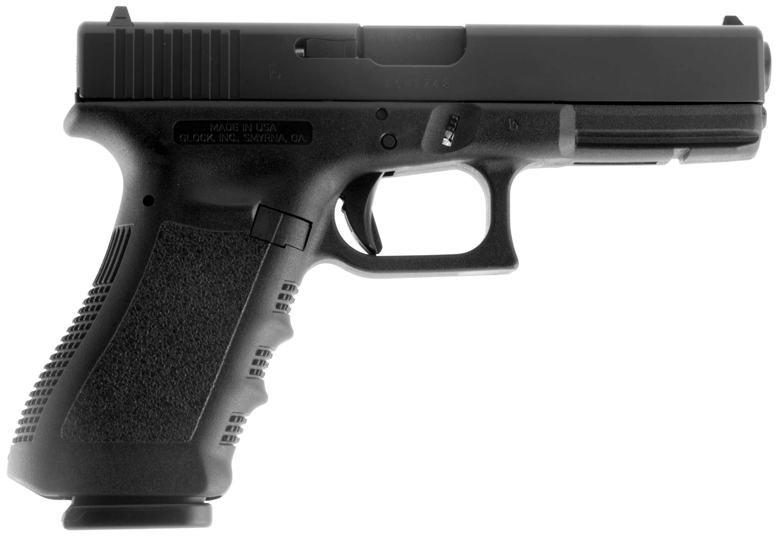 Glock UI1750201 G17 Gen3 Full Size Frame 9mm Luger 10+1 4.48″ Black Steel Barrel, Matte Black Serrated Steel Slide, Black Polymer Frame w/Picatinny Rail, Black Texture Finger Groove Grip, USA Made