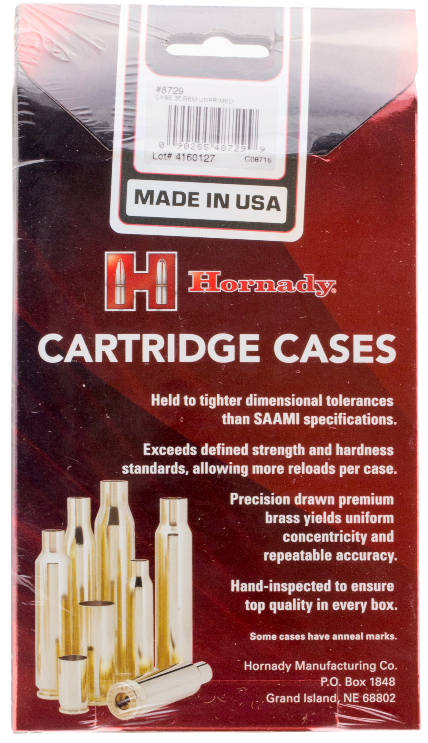 Hornady 8729 Unprimed Cases Cartridge 35 Rem Rifle Brass