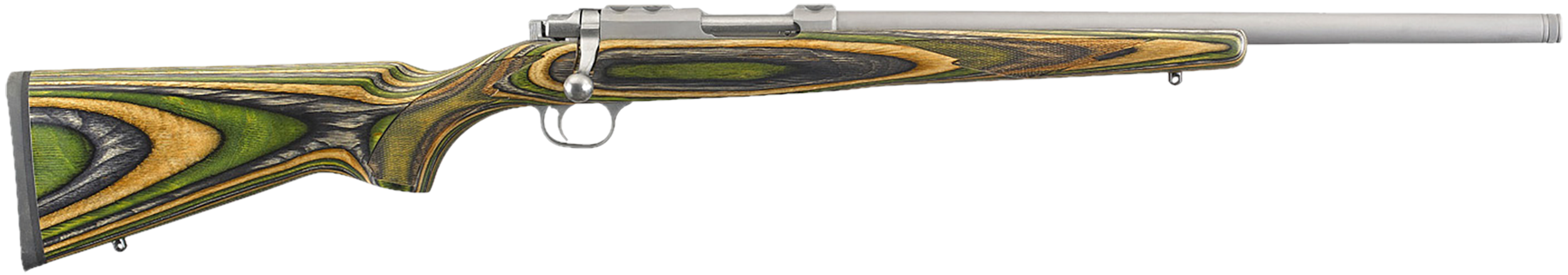 Ruger 7219 77/17 17 WSM 6+1 18.50″ Threaded Barrel, Matte Stainless Steel, Integral Scope Mounts On Solid Steel Receiver, Green Mountain Laminate Stock