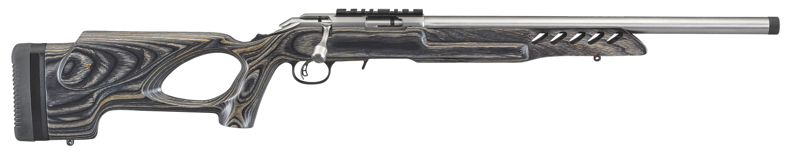 Ruger 8366 American Rimfire Target Full Size 22 LR 10+1 18″ Satin Stainless Steel Threaded Bull Barrel & Receiver w/Scope Rail, Black Thumbhole Laminate Stock, Right Hand