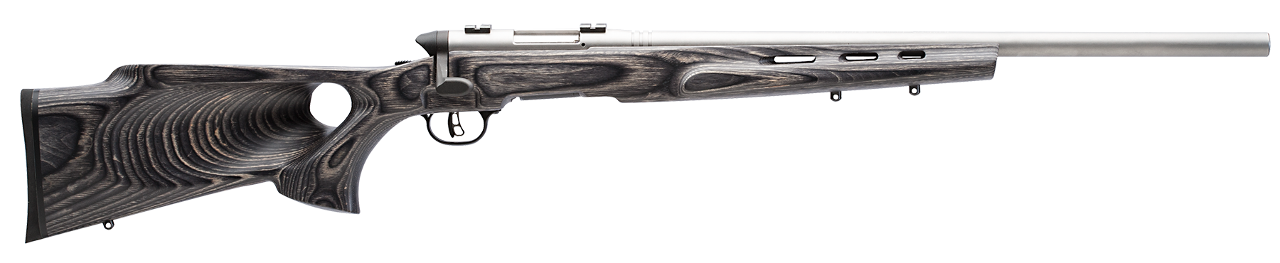 Savage Arms 96972 B.MAG Target Full Size 17 WSM 8+1 22″ Matte Stainless Heavy Barrel, Matte Drilled & Tapped Stainless Steel Receiver, Matte Gray Thumbhole Laminate Stock, Right Hand