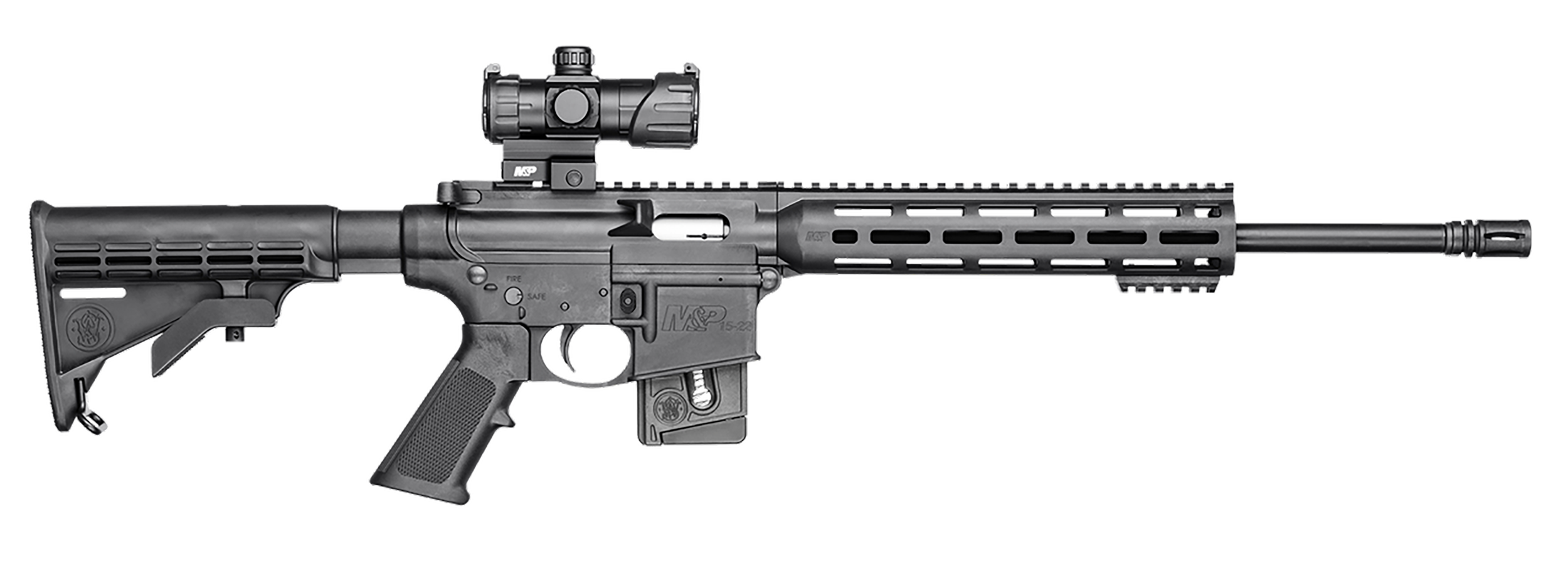 Smith & Wesson 12723 M&P15 Sport OR 22 LR 10+1 16.50″ Carbon Steel Barrel, Adjustable 6 Position Stock, M&P100 4MOA Red/Green Dot, A2 Flash Hider, Functioning Charging Handle, 2 Position Safety