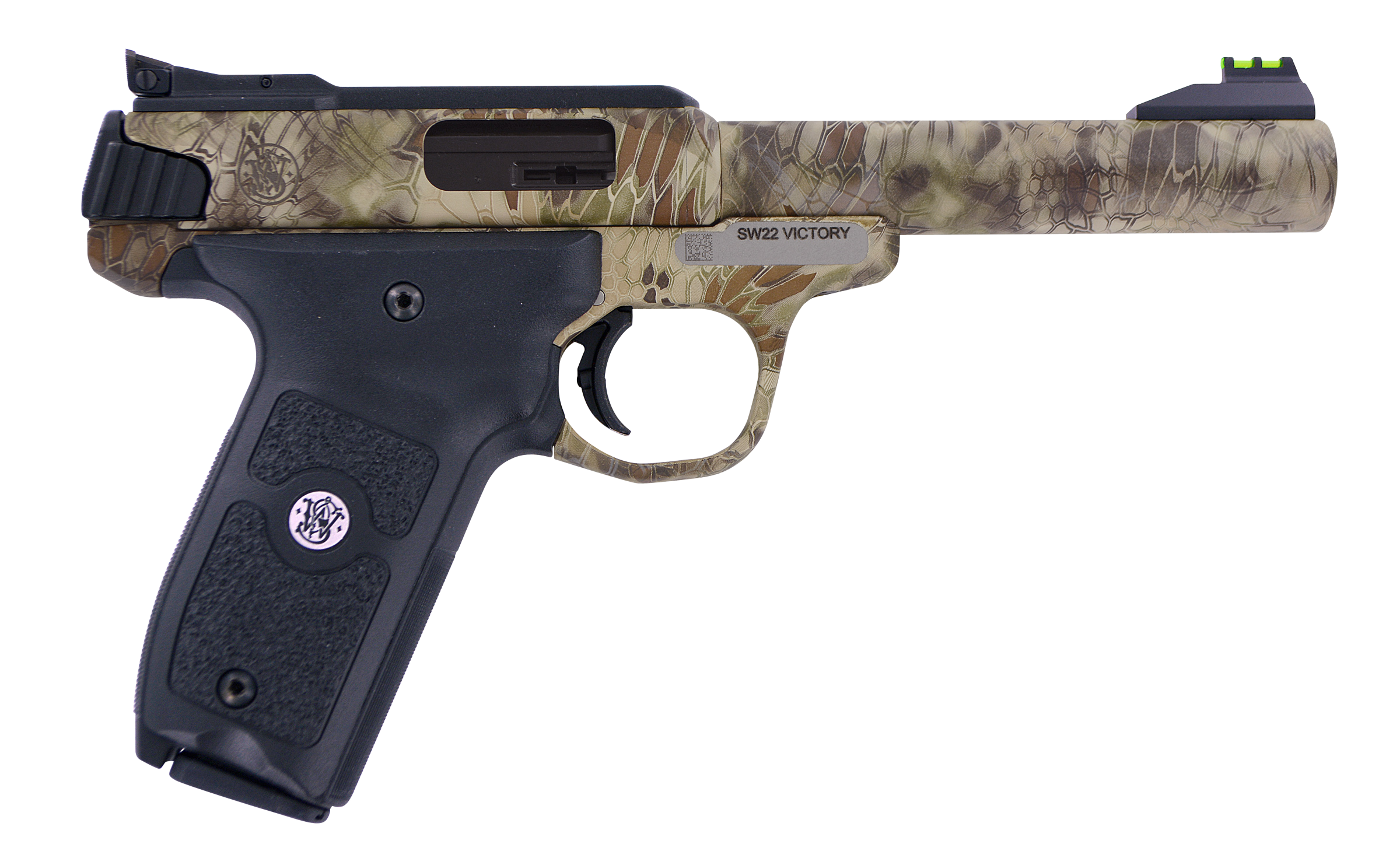 Smith & Wesson 10297 SW22 Victory Full Size Frame 22 LR 10+1 5.50″ Kryptek Highlander Match Grade Steel Barrel & Frame, Black Textured Grip, Thumb Safety