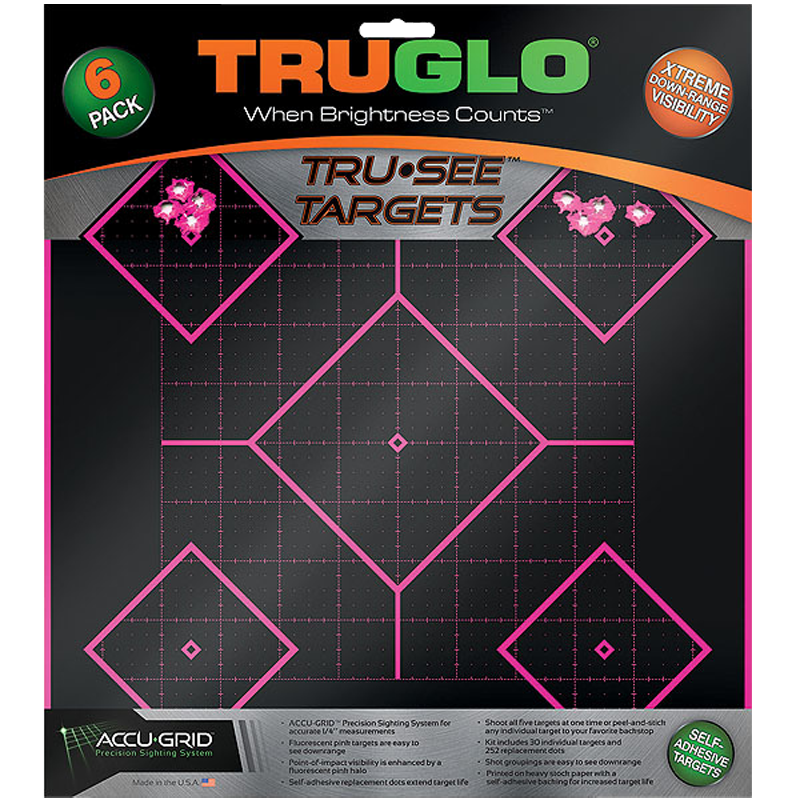 TruGlo TG14P6 Tru-See 5- Diamond Target Self-Adhesive Heavy Paper Black/Pink 12″x12″ 6 Pack