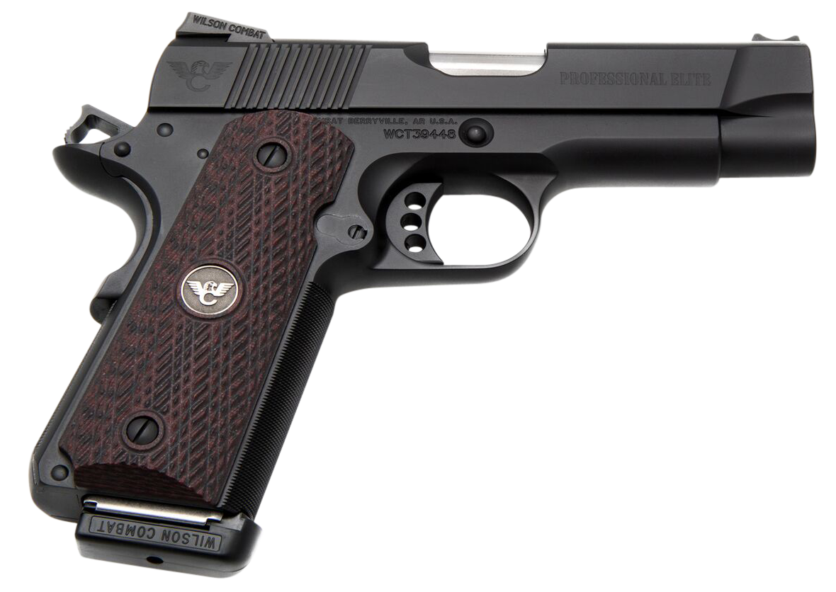 Wilson Combat PROE-PR-45 1911 Professional Elite 45 ACP 8+1 4″ Stainless Match Grade Barrel, Black Carbon Steel Serrated Slide, Black Steel Frame w/Beavertail, Black Cherry G10 Grip, Right Hand